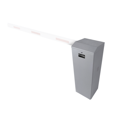 Barrera vehicular izquierda / Soporta brazo de hasta 5.5 m / Final de carrera ajustable por programación / Movimiento fluido / Diseño elegante color gris