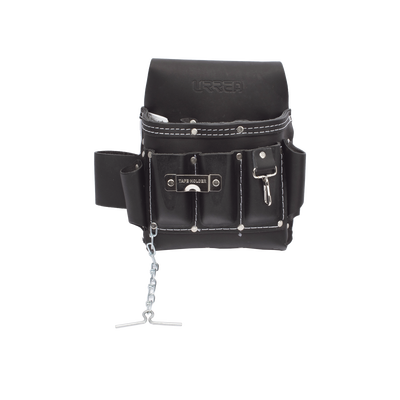 Estuche porta herramienta de piel con cinturón, con 10 bolsillos, medidas 25.4 x 25.4 cm.